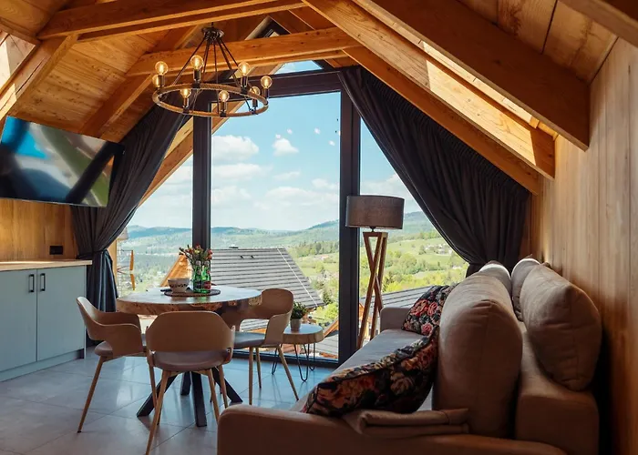 Swierkowe Chatki W Koniakowie se nachází přibližně 10 minut jízdy autem od Pod Mytem Ski Jump, a nabízí ubytování s parkováním zdarma, místem na piknik a jacuzzi. Tato vila má terasu.